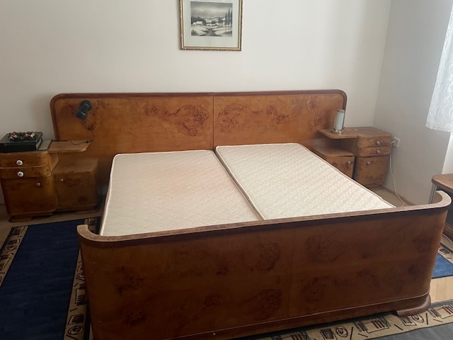 kompletní ložnice z padesátých let z masivu vyrobená tenkrát na zakázku, 15 000,- Kč,