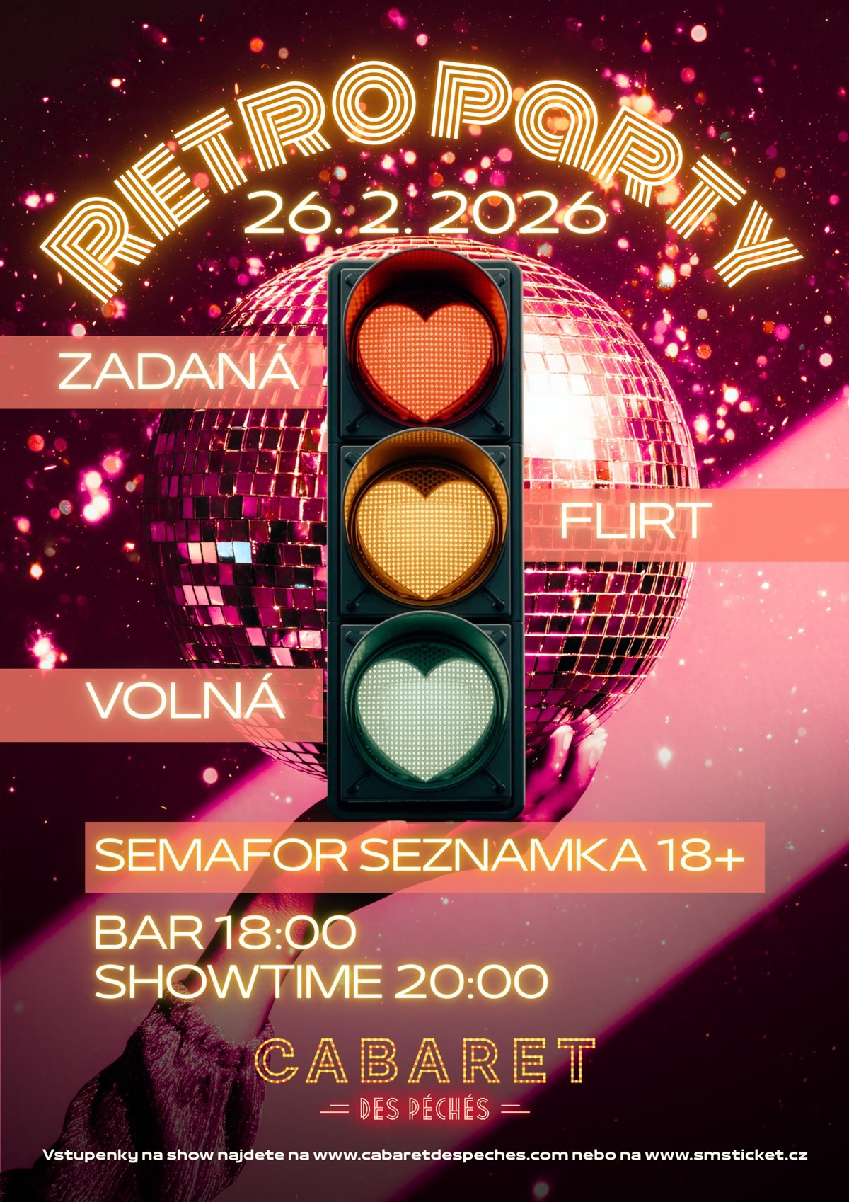 RETRO PARTY je exkluzivní cabaret retro party, kde největší hity 70s–90s zazní živě a přímo mezi vámi. Zpěv, tanečníci, třpytivé kostýmy, disko koule a světelné efekty vytvoří atmosféru, která vás vtáhne od prvního tónu až po poslední beat.