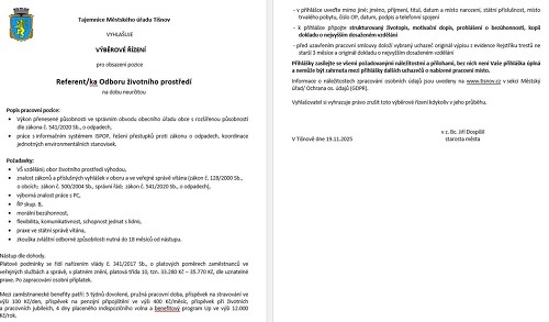 Referent/ka Odboru životního prostředí MěÚ Tišnov