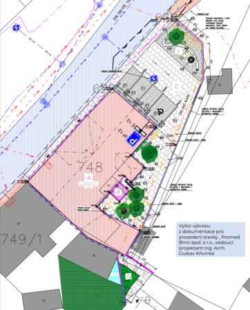 Za budovou, u nového výtahu a zadního vstupu do radnice vznikne malé patio, stíněné třemi subtilními kvetoucími stromy – muchovníky, které na jaře bohatě bíle vykvetou a na podzim se vybarví jejich drobné lísky do oranžova. Pod jejich korunami vznikne přistíněný prostor, vybavený mobiliářem, pro krátké posezení.