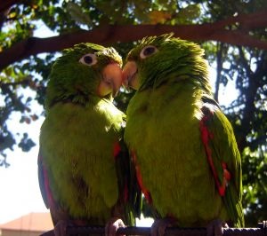 Papoušci se k sobě tulí. Zoo doufá, že založí rodinu